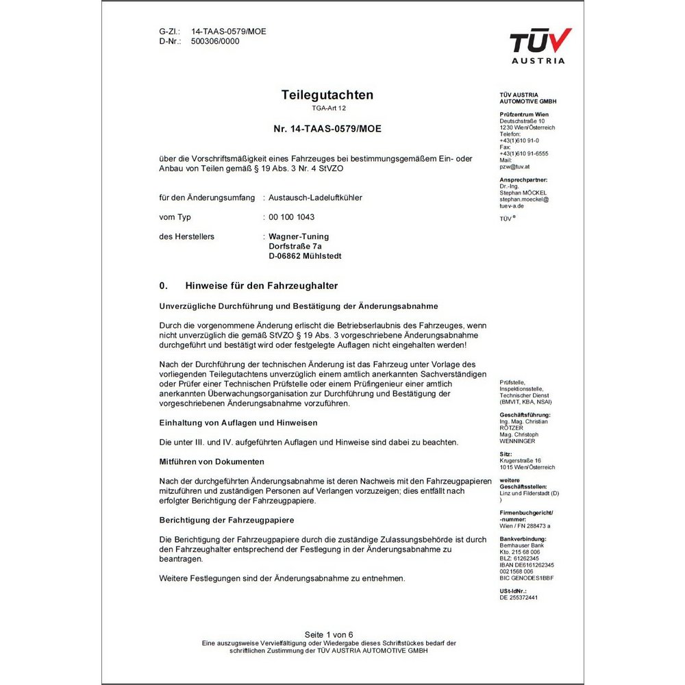 Maximale Qualität und rechtliche Sicherheit: Wie alle unsere Produkte unterliegt auch das Competition Ladeluftkühler Kit EVO 1 einer ständigen qualitativen Überwachung, um höchste Standards zu gewährleisten. Zusätzlich wird das Kit mit einem Teilegutachten für viele Fahrzeuge geliefert, was die Eintragung und rechtliche Sicherheit gewährleistet. Die hochwertige Anti-Korrosions-Beschichtung sorgt zudem für eine langlebige und optimale Kühlleistung.