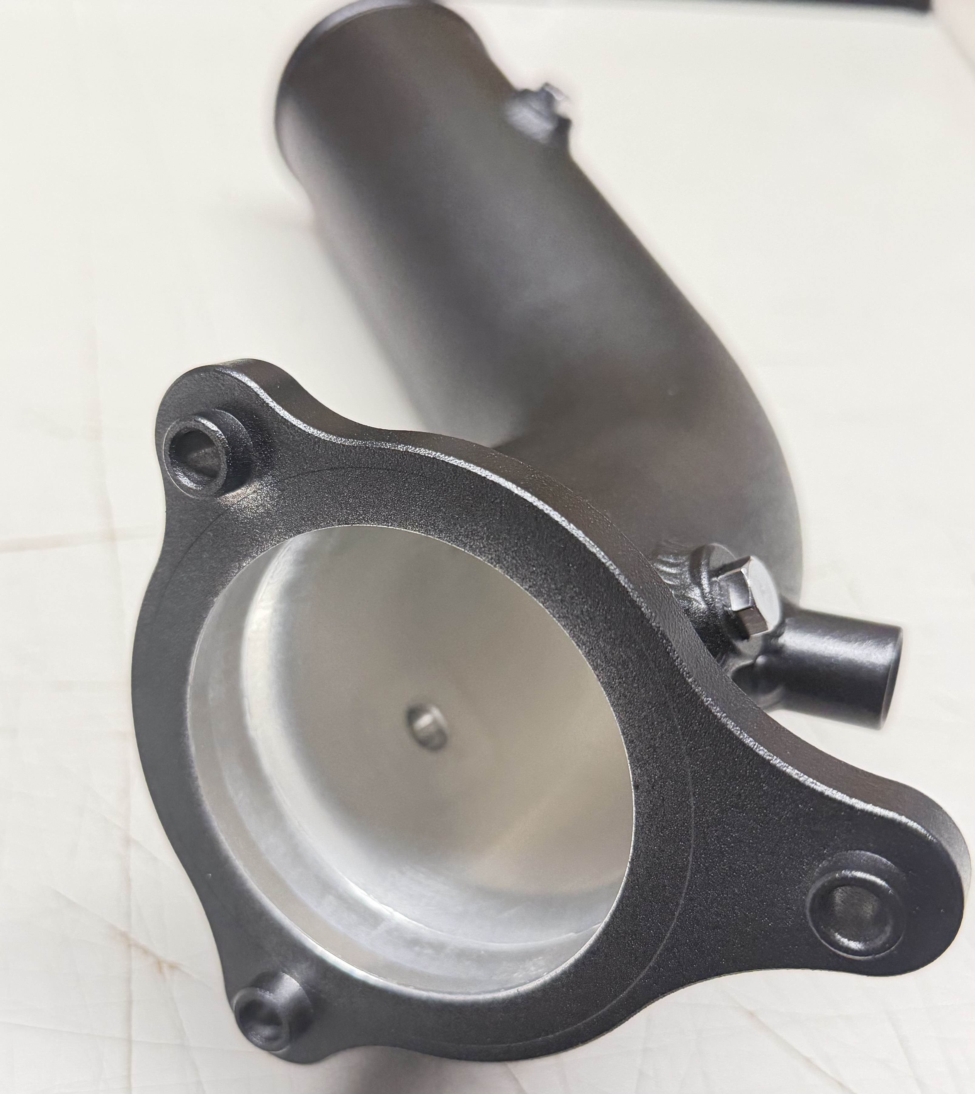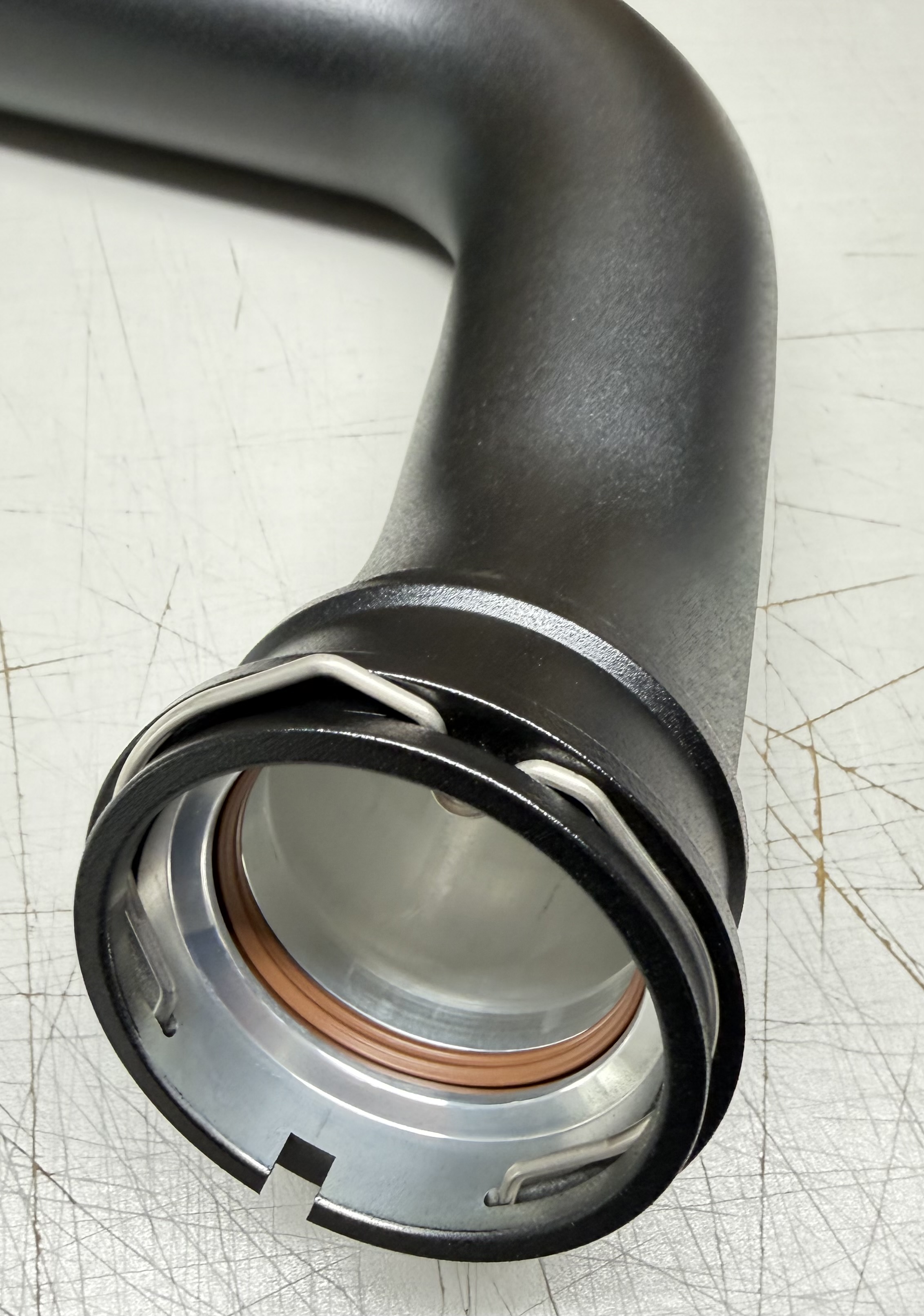 This aluminum tube replaces the factory plastic tube. For vehicles with an increase in performance, the increased boost pressure can cause the original pipe to burst. This defect can lead in the worst case by sucked fragments to engine damage.